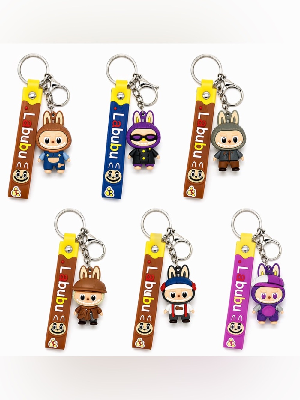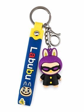 Colorful keychain with a playful rabbit character. Made for everyday use and easy to attach to bags or keys. Bright yellow accent with blue, brown, purple, and pink strap options. Lightweight and durable accessory featuring the brand and fun character charm.