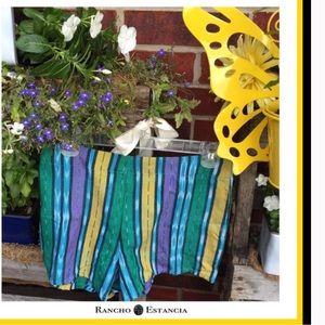 Super Cute Rancho Estancia Striped Shorts NWT. 100% Cotton. Size Medium. Approximate dimensions: Waist 16 inches, Length from top of shorts to bottom hem 13 inches. Colors: purple, yellow, turquoise, white, blue