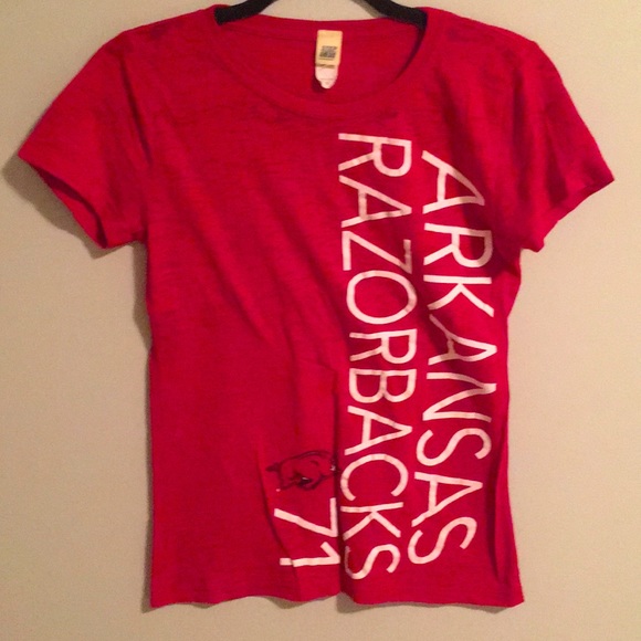 Awesome dark red Arkansas Razorback t-shirt. Tagged medium but would also fit a small. Slightly sheer material.