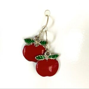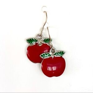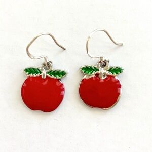 Silver-tone Enamel Apple Dangle Fish Hook Earrings.