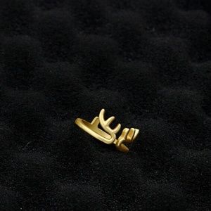 Cute Reindeer Deer Gold Antlers Holiday Christmas Ring