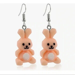 Cute Resin Bunny Rabbit Easter Spring Drop Earrings NWT