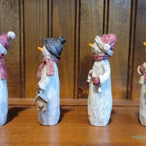 Cute Resin Snowman Figurines Vintage Christmas Holiday Set of 4