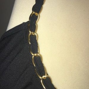 Brand new cute tank top with large ruffles. Gold chain lining at the top and as the straps. Comfy and cute to wear for going out. Never worn. Open to any reasonable offers:)