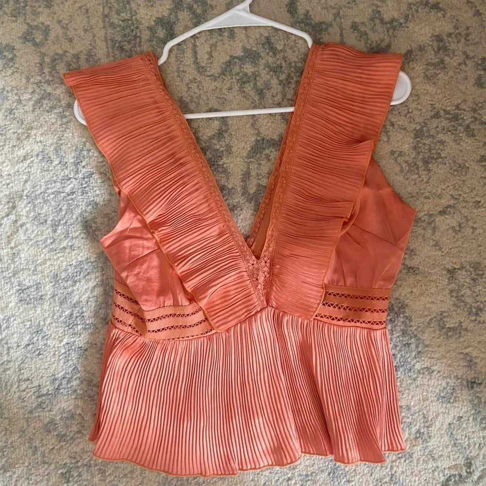 cute ruffle top with low back (salmon/orange-ish color)