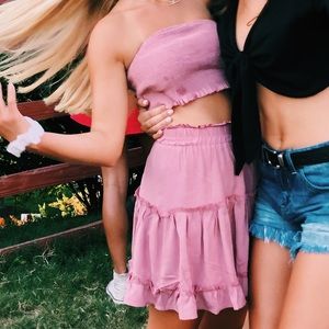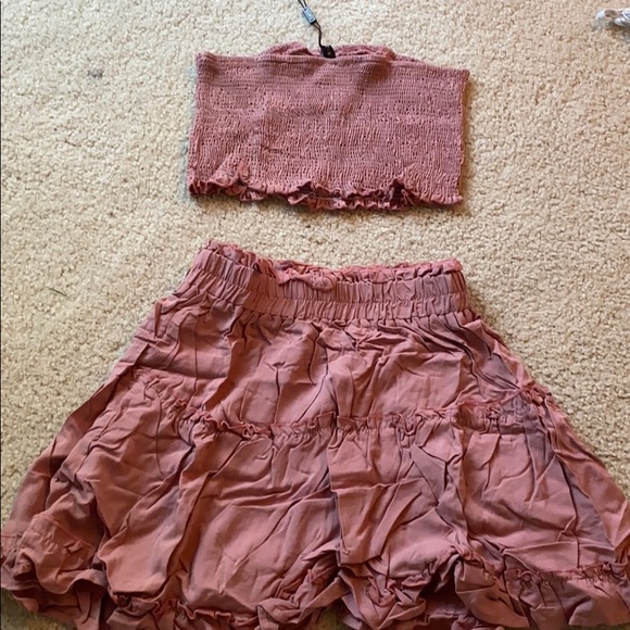 Blush ruffle skirt with stretchy waist and stretchy matching tube top, never worn (item shown in last picture is the same exact version being sold, but I have two sets so I am selling the unworn one)