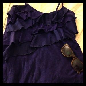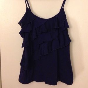 Ruffled navy tank top! The ruffles are made from two fabrics (tried to capture above). Perfect for layering or with white pants in the summer 🔥