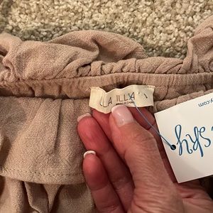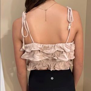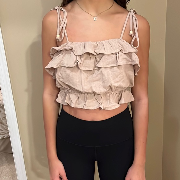 New With Tags! Taupe Crop top with ties on the shoulder with cute beaded detail. But strings can also be tucked in and can be worn as a “tube top”