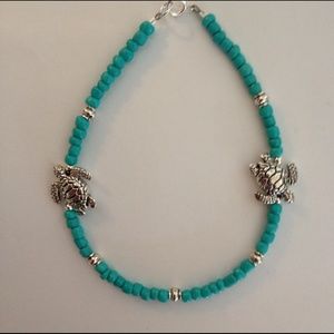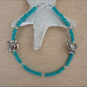 ๐ฌ Really Cute Sea Turtle Anklet! ๐ Turquoise color beads with Two Turtles. Sterling Silver Clasp! ๐ข๐ Custom Size