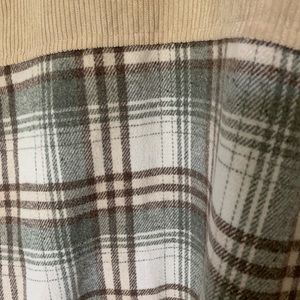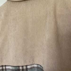 Cute shacket! Part corduroy part flannel…never worn. See my picture regarding bundling tops on my page to save $$ and shipping!
