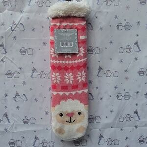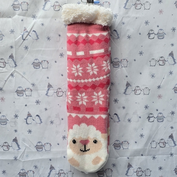 Cute Sheep With Snow. Sherpa Lined Socks.