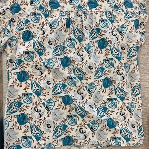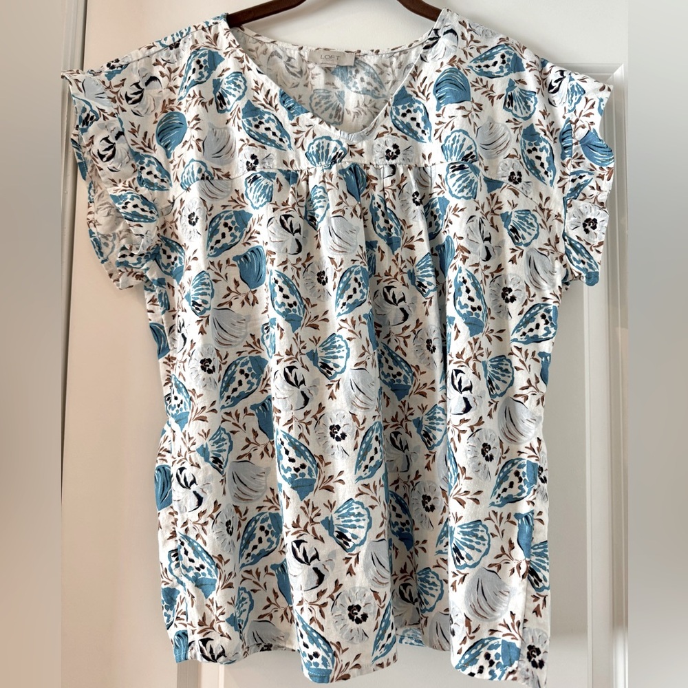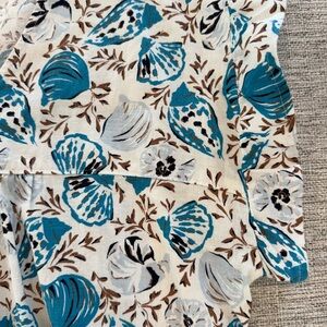 This stylish women's top features a beautiful shell pattern in blue and white. Perfect for casual outings or a day at the office. Love this pattern, just sadly too big on me! It’s light and perfect for those warm Summer days or vacation. You can dress it up or make it cute casual! Size Medium, worn once.
