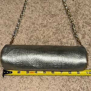 This bag is in excellent shape. The long strap is detachable so you could carry it with just the small clutch loop.