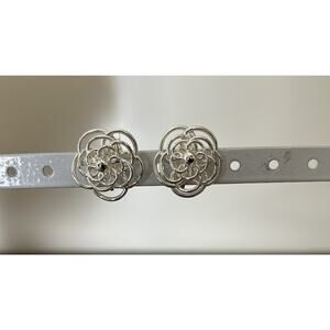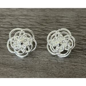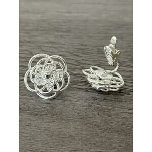 Cute Silver Tone Flower Clip On Earrings