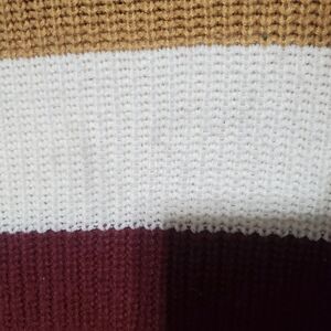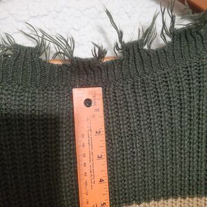 Cute Slouchy Fringed Green Camel White and Maroon Long Sleeved Sweater Size 3X