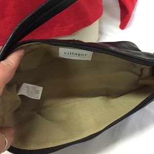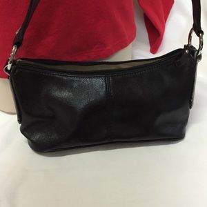 Perfect condition!! Never used. Faux leather. Little black bag with silver and rhinestone hardware. Strap and sides have silver piping. Zippered closure. Interior has a zippered pocket. 9.5" x 4" x 4" Strap drop 9" Can be worn on shoulder.