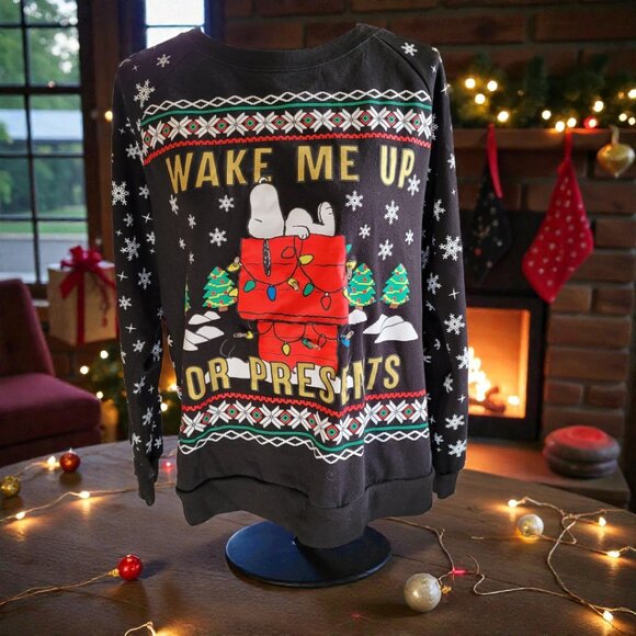 Cute Snoopy "Wake Me For Presents" Black Sweatshirt Junior Size