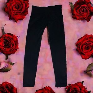 π§ββοΈCute Stretchy Ribbed Black Yoga Pants NYLON/SPANDEX SUPPORT Leggings L EUC