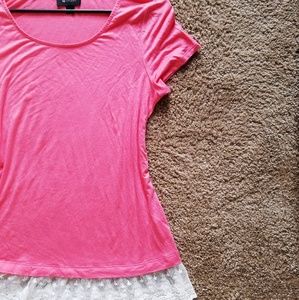 Adorable top with lace detailing at bottom or top. Brand new never worn. Pretty deep coral color. Super feminine and beautiful! Size small but I would say it fits more like a medium. Very flowy.