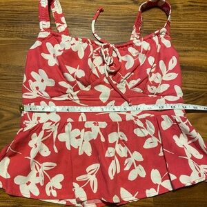 Cute Summer Top | size XS. The ruching on the back makes it a little stretchy but not too much. Super cute worn a few times and just noticed the slight pilling on the front of shirt (see pic) lightly lined, I always wore the shirt with no bra.