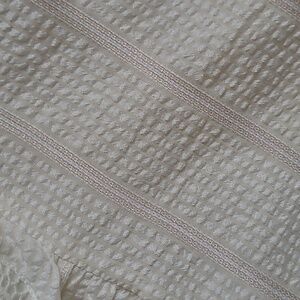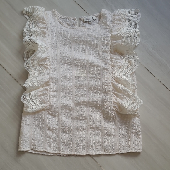 Perfect condition! Great for warm weather because of the lightweight fabric. Dress up or down too! Cream/white color with the cutest lace flutter accent!