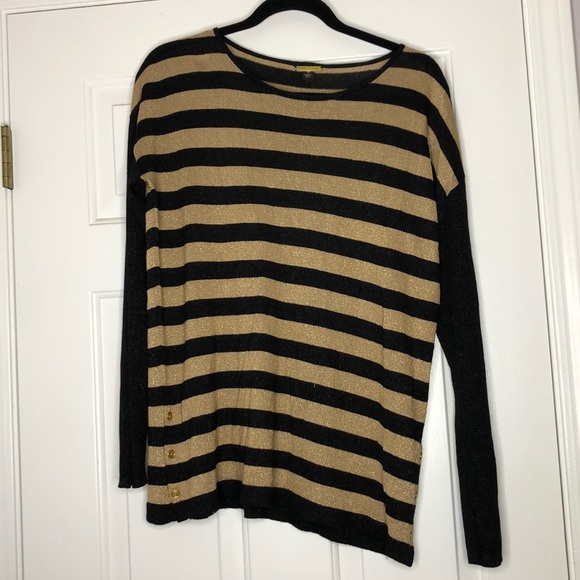 Great for the holidays. Gold and black sparkly sweater. Button details alone side