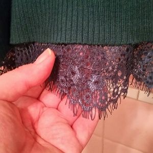 Dark green very pretty used but lots of life in it very soft and sexy with the hint of lace no stains or holes