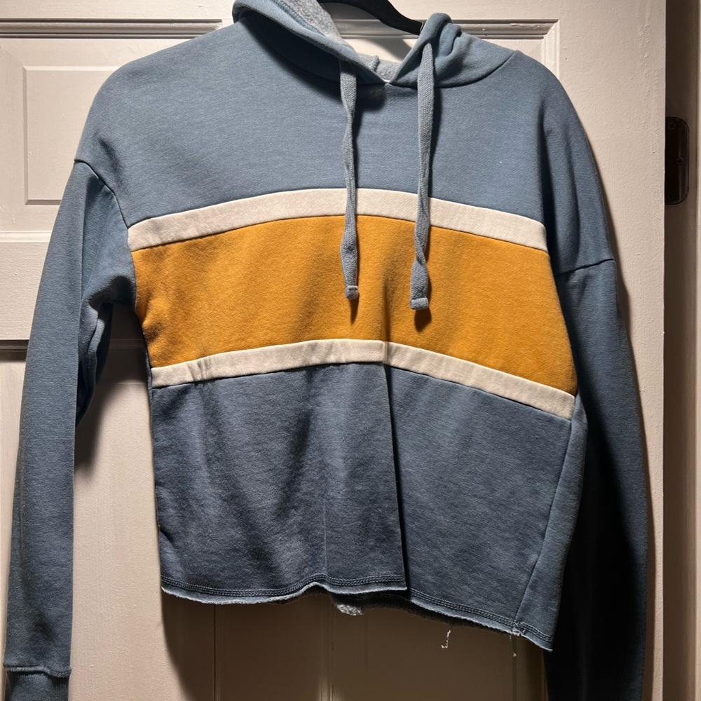 Cute blue and white cropped sweatshirt with hood