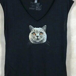 Cute Tabby Cat V-Neck T-Shirt NWOT XL
