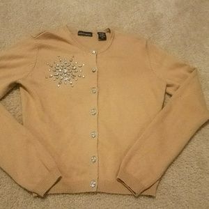 Long sleeve, tan cardigan with pretty rhinestone pattern from Moda International (Victoria's Secret).