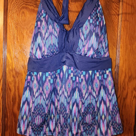 Slimming tankini. Has a tie neck, very slimming. Too large for me now. Smoke free home.