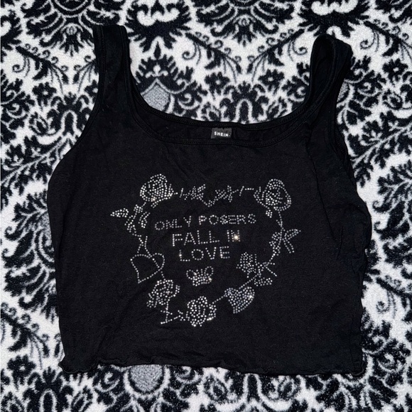 never been worn (nwot) so cute and sparkly states “only posers fall in love”