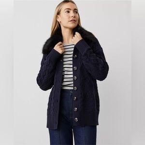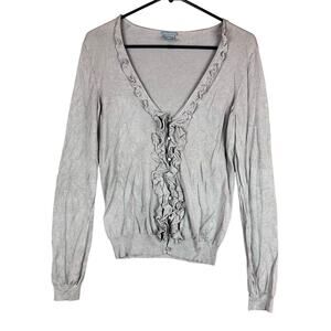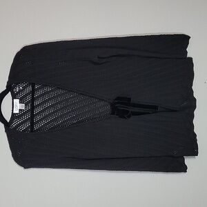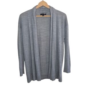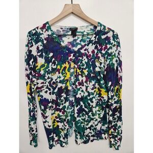 simple teal cardigan, v-neck, pearlized buttons. Long sleeves.