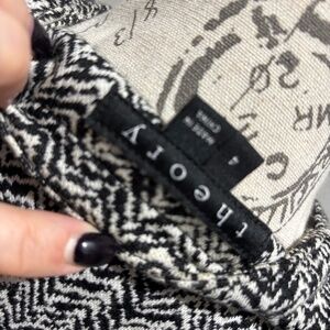 Theory Women's Jacket Blazer black and white Herringbone with Leather Trim 4