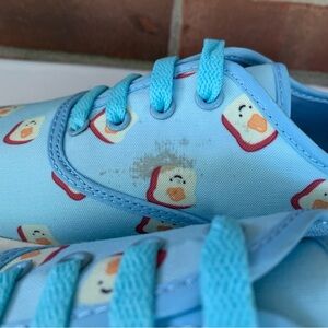 Cute To The Core Toast Print Lace Up Sneakers Women’s US 10 M. Toast butter smiling face print. In great new condition, some marks on upper, see pics. Y199 02