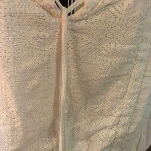 Elastic at waist sleeves and neckline. Tie at neckline. Lace decoration on the front. 100 % cotton
