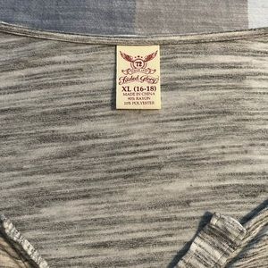 Cute faded glory top. Lightweight material and soft. Gray and white heathered color. Size XL (16-18).