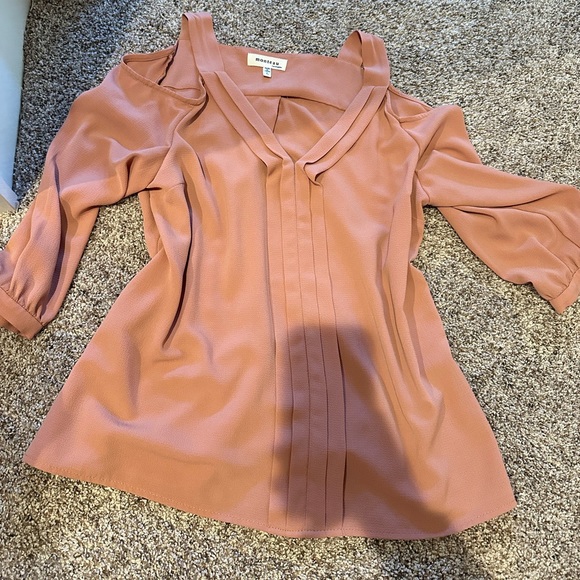 Smoke free home, no flaws or snags Size large but fits like a medium Peach color