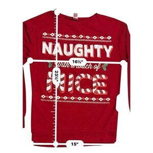 Ugly Christmas sweater, naughty, nice, Santa‘s list, red, cute Christmas sweater, juniors, extra small, size one, super soft, good use condition, fast shipping, women’s, daughter, sister, son, unisex, mom, aunt, uncle, dad, secret Santa, white elephant, holidays, holiday party, office party, XS,
