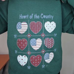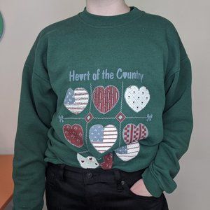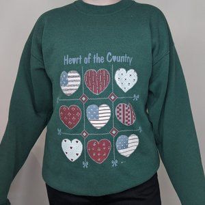 Cute vintage hunter green oversized grandma cottagecore sweater / sweatshirt reading Heart of the Country. Perfect cottagecore vibes. Tagged a medium, fits like a large or XL. Great condition.