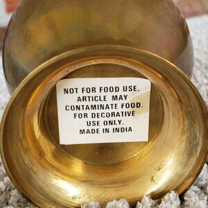 Cute Vintage Small Brass Urn - this is a very cute small urn with lid. Brass made in India - not for food use. Measures 7" tall including lid by 3 1/2" wide.