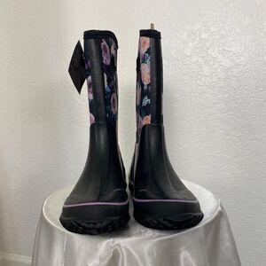 ༓ adorable rain boots with flower design, mid calf height, purple details