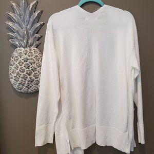 Super cute white cardigan that's perfect to transition into fall and winter. It is SO soft too!