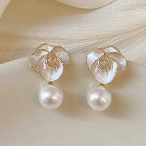 This is a Cute White Dripping Oil Korean Style Flower Drop Enamel Drop Dangle Earrings set.