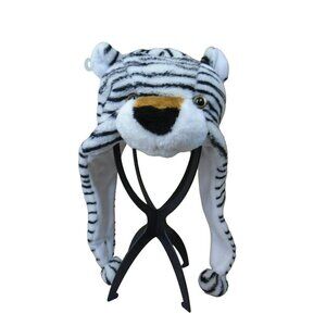 Cute White Tiger Plush Animal Character Winter Hat Fun Ski Cap with Detailed Ani