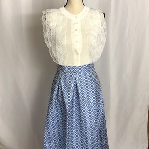 Blue and White Patterned A-Line Circle Skirt. Cute for dressy/ stylish outfits.