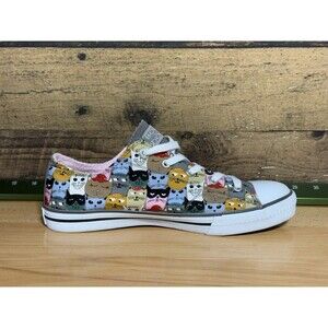 These BOBS from SKECHERS UTOPIA Clever Cats sneakers are adorable for women in shoe size US 8.5M. Featuring a colorful cat theme and made of canvas material, these sneakers are both stylish and comfortable. The medium width size ensures a good fit for everyday wear, making them a fun and fashionable choice for any casual outfit. Perfect for cat lovers looking for a cute and practical shoe option.
