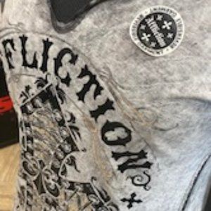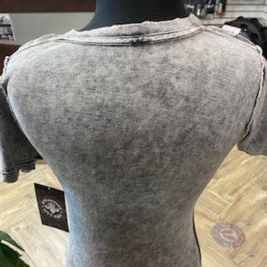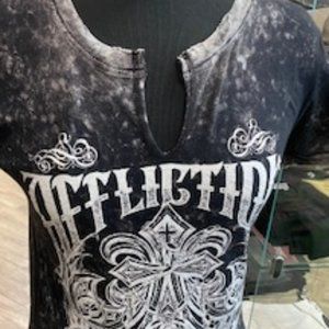 Cute Women's Black/Grey Reversible Affliction Tee, Size Large