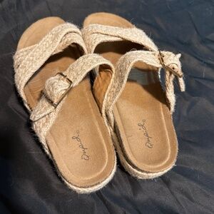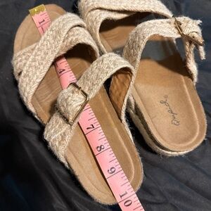 Adorable woven sandals. No size inside shoe, but I wear an 8.5-9 and these fit well.
