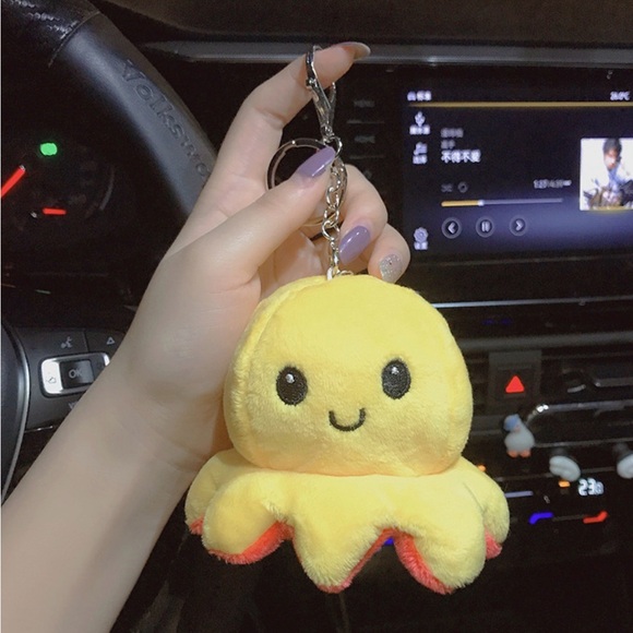 Adorable yellow octopus keychain with a smiling face. Perfect for adding charm to your keys or bag.